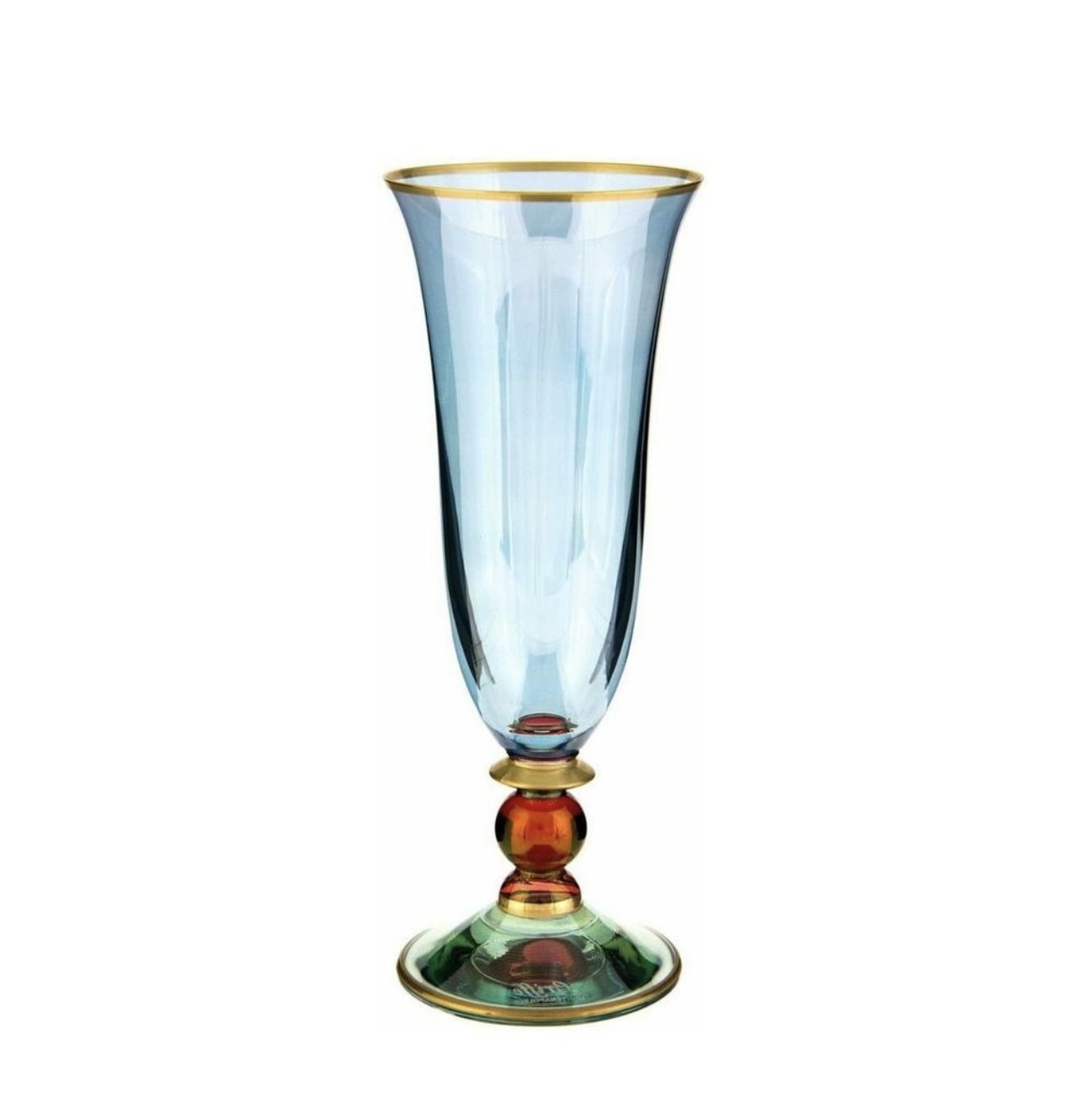 📏 Характеристики набора: · Тип: Набор бокалов для шампанского, коктейлей, воды и любых напитков · Количество: 6 бокалов · Материал: Стекло с ободком из 24-каратного золота · Дизайн: Цветные бокалы · Производитель: Griffe Montenapoleone, Италия 🇮🇹